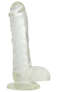 Mindre dildo i realistiskt utseende och stark sugkopp.