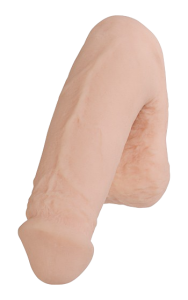 Super-realistisk dildo med hård kärna och mjukt yttre, av silikon.