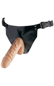 Ihålig Strap-On med sele, som ger ökad tjocklek och längd.