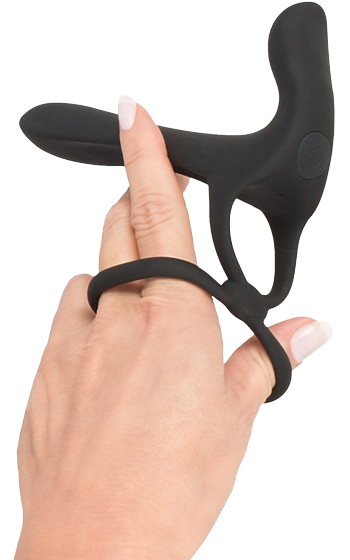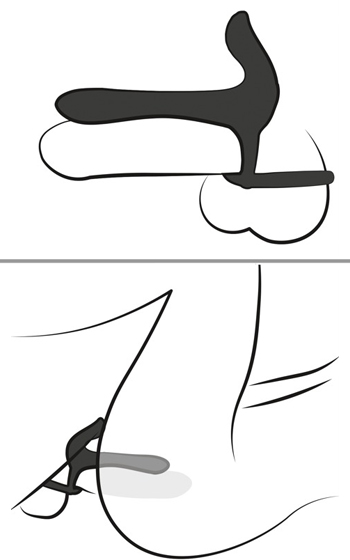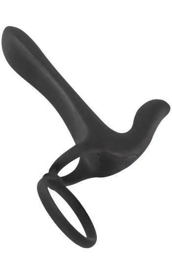 Denna parvibrator ger extra tjocklek till mannen och ger vibrationer till både g-punkten och klitoris hos partnern. Den fästs runt penis och pung, vilket ger en sammetslen känsla utan att vara i vägen. Penisringen hjälper till med erektionen och pung-ringen håller den på plats. Med två motorer och 20 vibrationslägen kan du styra den direkt på produkten. Vattentät och uppladdningsbar med USB-kabel. Innermåttet på ringarna är 3,2 cm och 4,5 cm. Den penetrerande delen är böjbar och skålformad för perfekt passform mot penis.