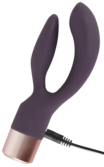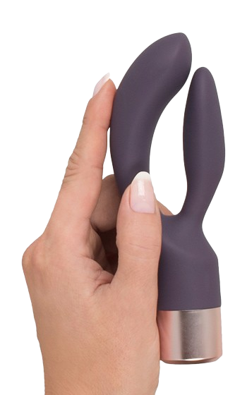 Denna fantastiska massagestav för kvinnor är mjuk och ergonomisk, och förenar det bästa av två världar i en enda produkt. Du kan själv välja hur du vill använda den, antingen med den mindre delen i vaginan och den andra på klitoris, eller med den mindre i rumpan och den större i vaginan. Elegant Rabbit har en kraftfull motor i varje topp och erbjuder tio olika vibrationsprogram. Den är tillverkad av lila silikon med en sammetslen känsla och eleganta guldfärgade detaljer. Armarna är böjbara för att anpassa sig efter ditt sätt att använda den och din kropp. Du kan träffa varje ergonomiskt punkt och njuta av starka vibrationer mot dina känsliga nervtrådar. Den fungerar lika bra för ensam användning som tillsammans med en partner. För att starta produkten håller du knappen intryckt i tre sekunder och sedan kan du växla mellan program med knappen. För att stänga av håller du knappen intryckt i tre sekunder igen. Elegant Rabbit är uppladdningsbar med den medföljande USB-kabeln och kan laddas med din vanliga smartphone-adapter.