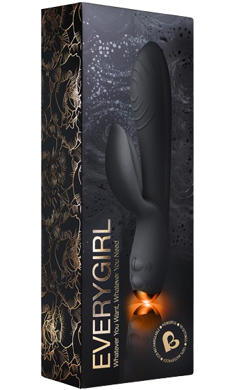 Förförlig och precis avlagd rabbitstav med strömlinjeform av hög kvalitet, skapad för att uppfylla alla kvinnors önskemål och krav. Den är smidig och känns elegant tack vare den sammetsmjuka silikonbeläggningen och de klassiska funktionerna, bestående av en vibrator i toppen och en i den mindre avstickaren för klitoris. Motorerna är oberoende av varandra och kan köras i olika program samtidigt. Designad för att passa perfekt tillsammans med den kvinnliga insidan och penetrerar dig 11 cm. Staven är något mindre än sina syskon i samma kategori och är lättare att hantera. Motorerna har 10 olika vibrationsprogram vardera, samt en kopplad LED-lampa i botten som lyser synkroniserat i olika färger. Den är uppladdningsbar via medföljande USB-kabel och tre timmar laddning ger tre timmar lektid. 100% vattentät vilket innebär att den även kan användas under vattnet.