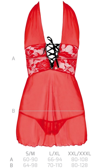 Utforska en värld av romantik och förförelse med denna transparenta, röda chemise. Skapad för att omfamna din kvinnliga skönhet genom detaljerad design som tillfredsställer öga och fantasi. Plagget kombinerar charm med en sensuell touch.