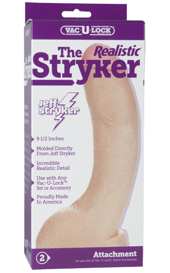 Kan du eller din partner klara sig för att bli penetrerad av en nästan 22,5 cm lång och 19 cm tjock stake? Denna replika av porrstjärnan Jeff Strykers penis kombineras med valfri sele från serien Vac-U-Lock. Denna exakta kopia av Jeff Stryker är lätt böjd och ordentligt tjock med en exakt kopia även av hans pung. Tillverkad av Doc Johnson i Amerika. Dongen känns som den äkta varan i materialet och kan även användas ensam om du inte är intresserad av lekar med strap-on.