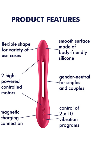 Denna flexibla och mångsidiga produkt andas verkligen kvalitet och är skapad av ett ledande märke på marknaden, Satisfyer. Utforska de extrabilder som finns tillgängliga för att få inspiration och idéer till de många olika användningsområden som denna vibrator kan erbjuda.